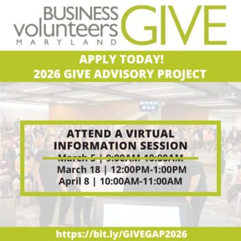 * Deepen your partnership with Business Volunteers Maryland.